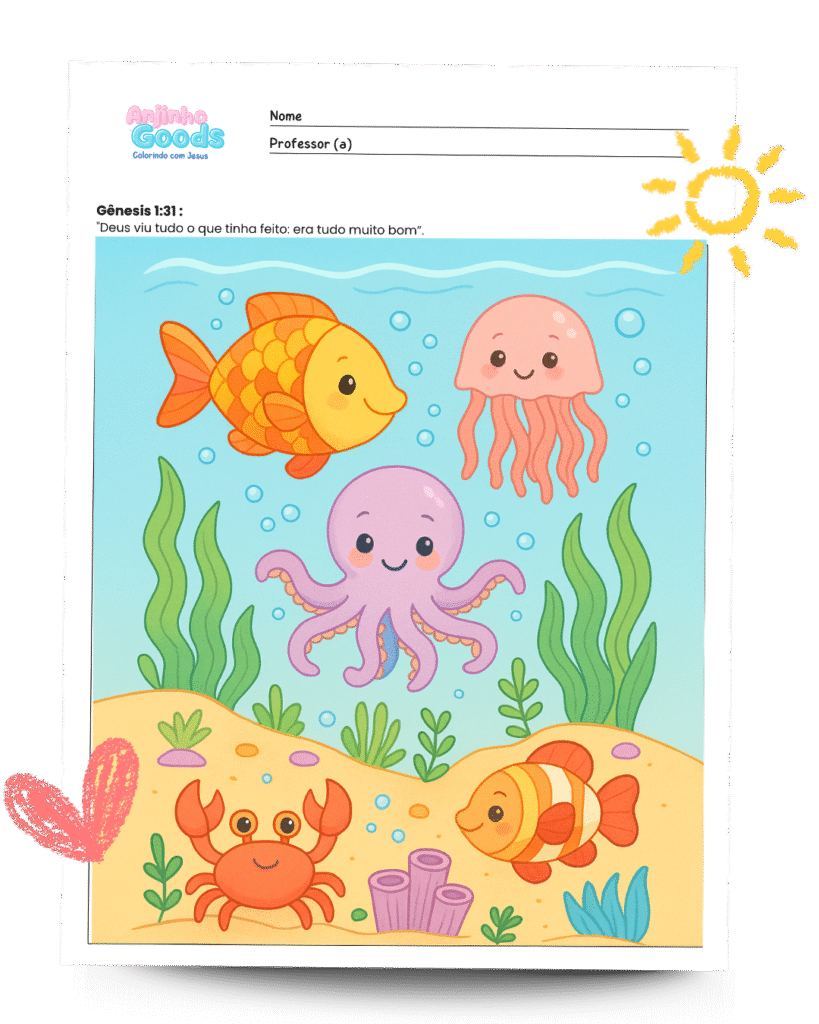 50 desenhos exclusivos em PDF + histórias cristãs curtas + folhas de oração para fortalecer a fé e manter a criança entretida de forma saudável. Transforme o tempo de tela em crescimento real